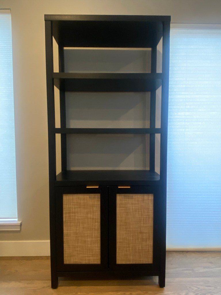We badly needed to update our bookcase to something more modern that also has some lift! We have floor air vents, so this bookcase allows us to still use the space without blocking airflow from the vent underneath. This bookcase perfectly fits our natural modern style. It’s available is other wood stains, has sturdy and deep shelves, and great storage space in the cabinets!
